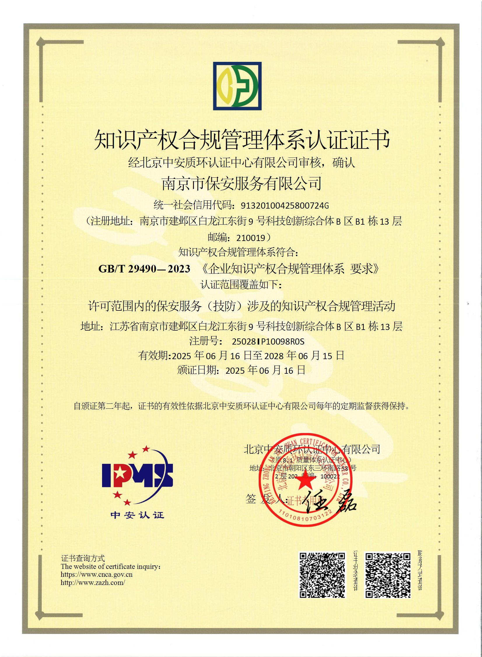 祝賀:南京市保安服務(wù)總公司通過(guò)企業(yè)誠(chéng)信管理體系認(rèn)證和企業(yè)社會(huì)責(zé)任管理體系認(rèn)證